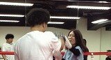 ご存知の通り、ボクシングは1対1で殴り合う競技です。当サロンでも当然ながら対人での練習を行います。女性(殴るのみ)vs男性(避けるのみ)で女性的には安心のルールでの戦いです。正しい技術を身に着けた相手に渾身のパンチを充てるのは至難の業です。殴る側はなかなか当たらずいたずらに体力の未消耗していきます。